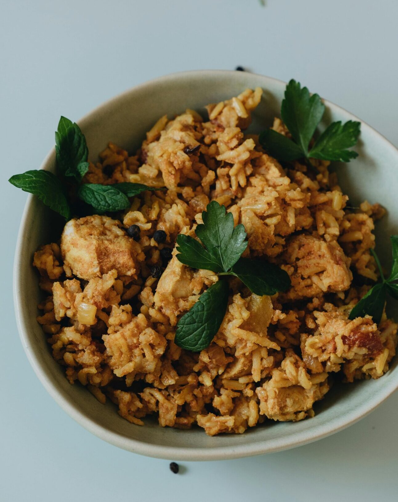 Riz basmati sauté au wok avec des morceaux de poulet, des légumes croquants et des épices parfumées. Un incontournable plein de saveurs !